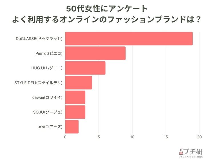 ちなみに、同世代の方によく利用する通販ファッションブランドを聞いてみたところ、DoCLASSE(ドゥクラッセ)やPierrot(ピエロ)など、やはり有名ブランドが名を連ねました。